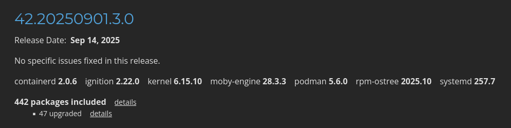 Dans la page "Fedora CoreOS Release Notes stable" je vois quelques packages mis en avant :